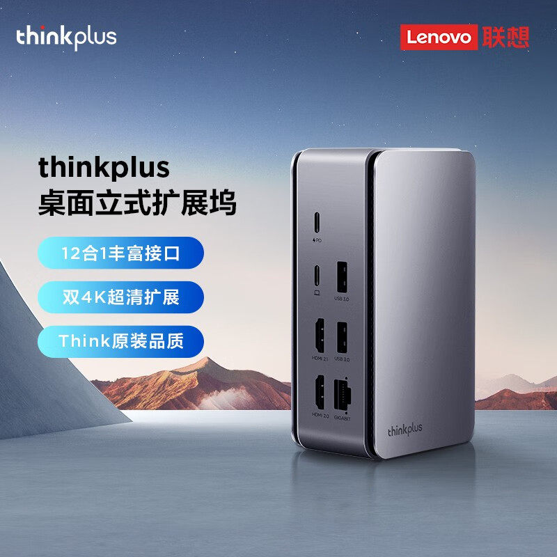 联想桌面扩展坞笔记本三屏扩展type-c桌面收纳usb千兆网口/HDMI等