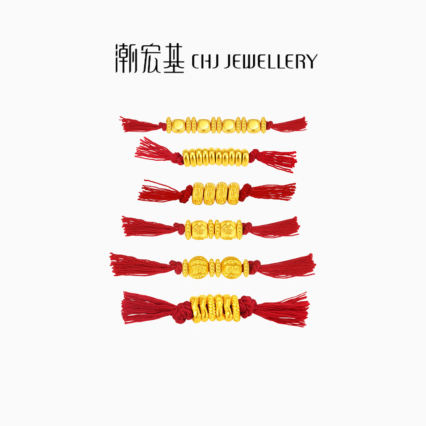 潮宏基盘缠金黄金串珠足金硬金经典隔珠DIY转运珠5D硬金礼物
