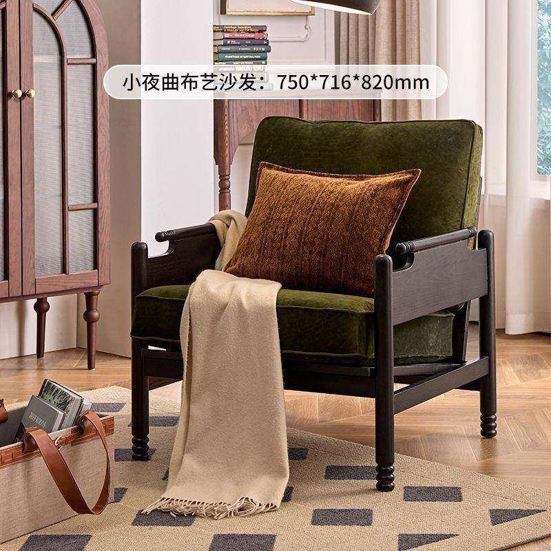 法式复小古实木沙发式约简布艺户型客厅卧室休闲椅单人沙发椅EJY