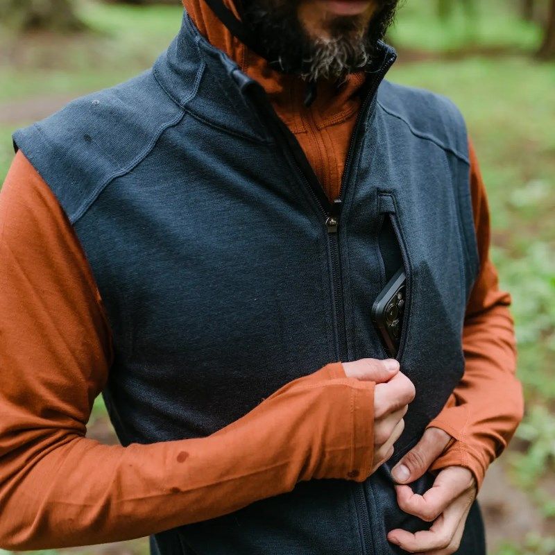 灰壳美利奴羊毛户外男士运动马甲美丽诺速干衣午休保暖背心跑徒步