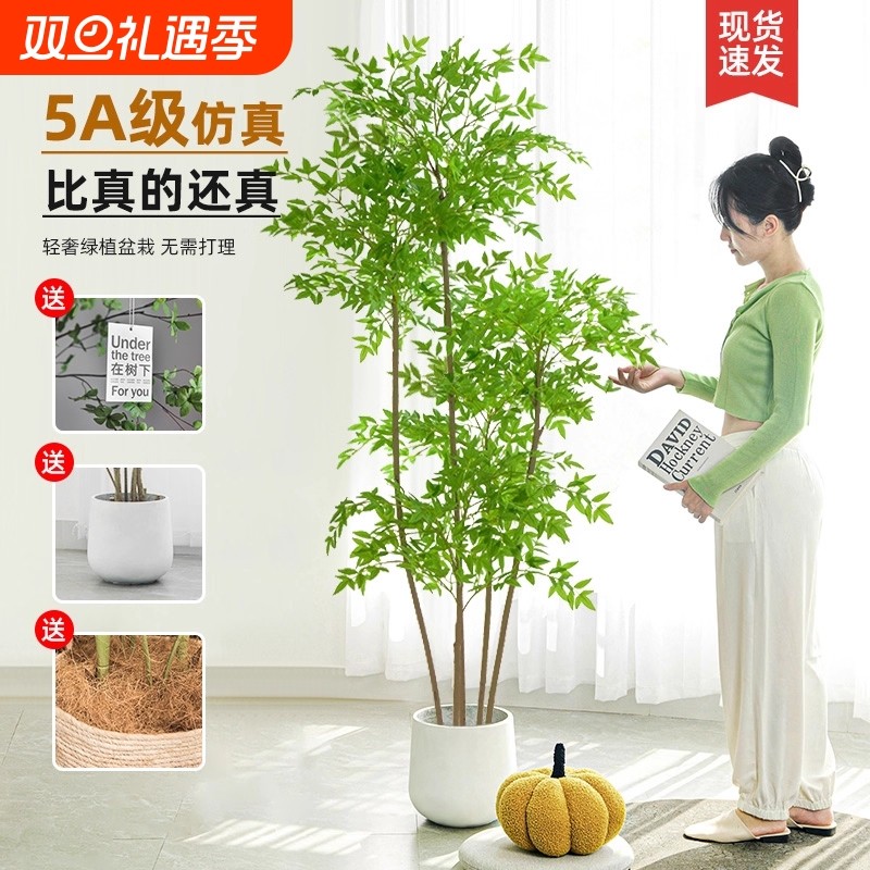 南天竹仿真植物假绿植装饰室内落地盆栽高级感客厅轻奢假花树氛围