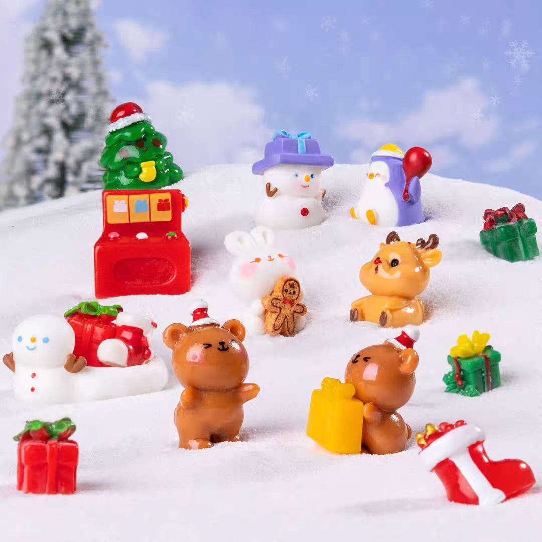 跨境微景观创意圣诞节动物小镇 diy装饰品配件迷你车载桌面小摆件
