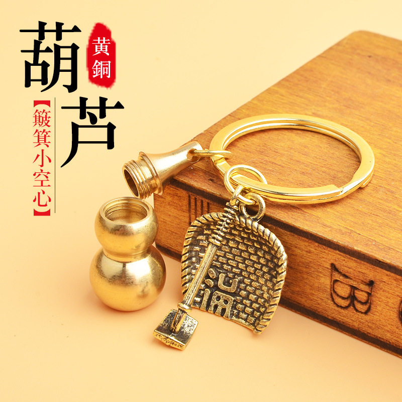 钥匙扣朱砂黄铜空心葫芦转运出入平安挂件汽车钥匙链吊坠男女礼物