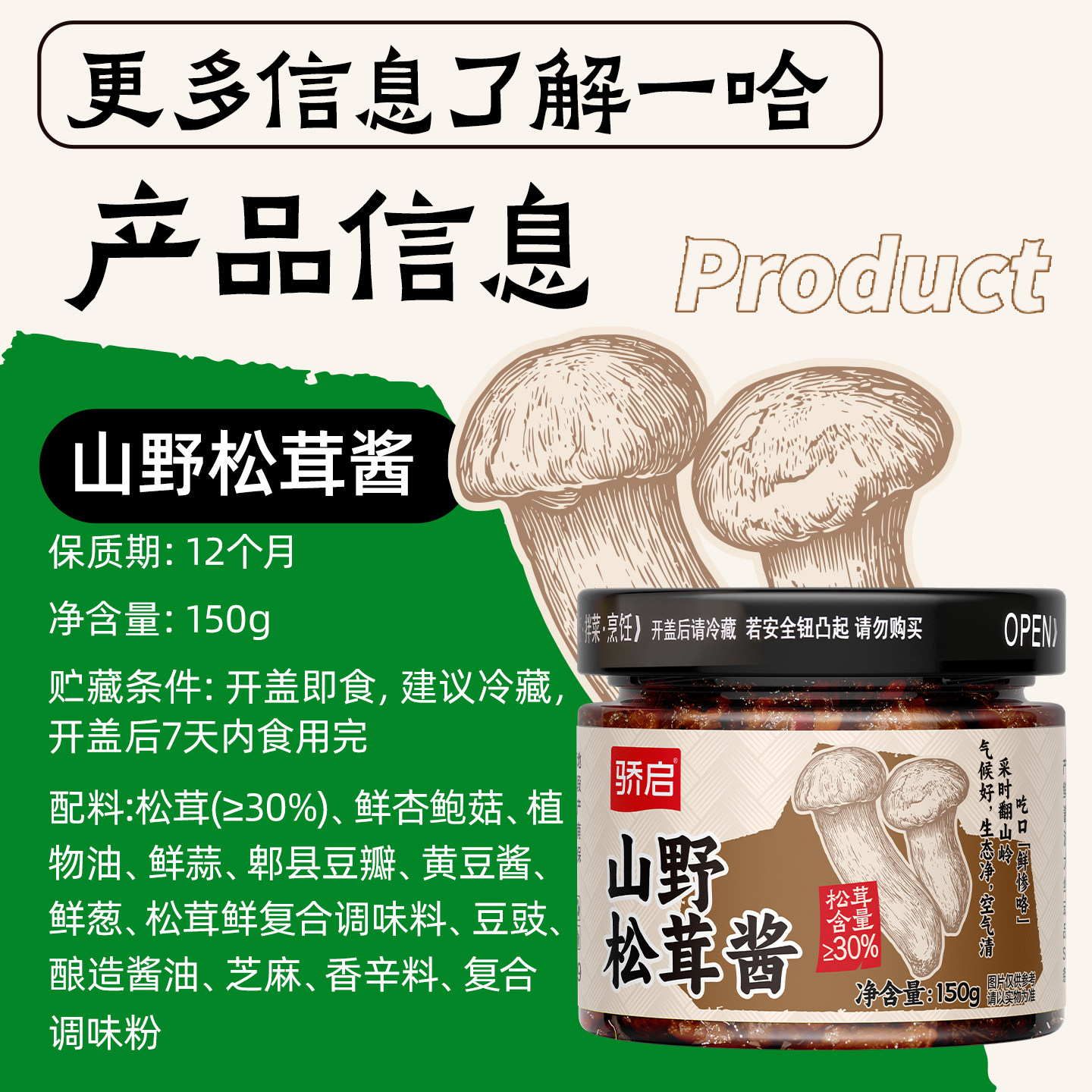 骄启山野松茸酱下饭酱鲜菌菇酱即食小吃酱料拌面拌饭酱家用调味酱