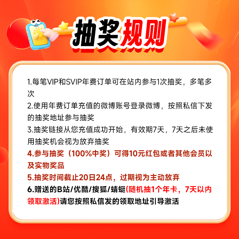 蜻蜓年卡/b站年卡/搜狐年卡/优酷年卡随机一个年卡+10元现金红包=到手50元!