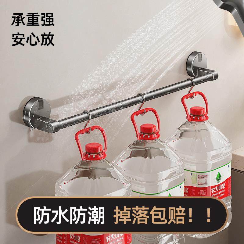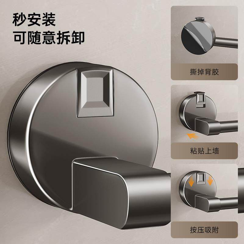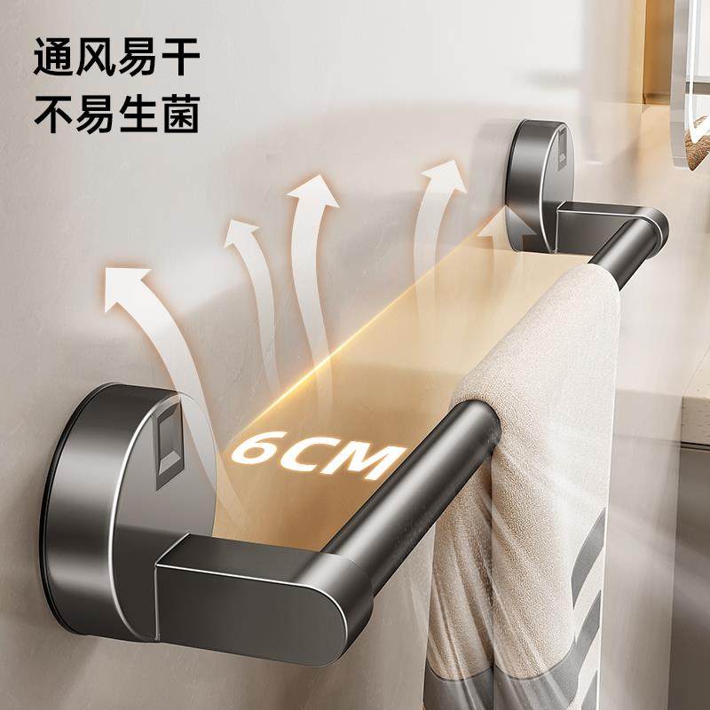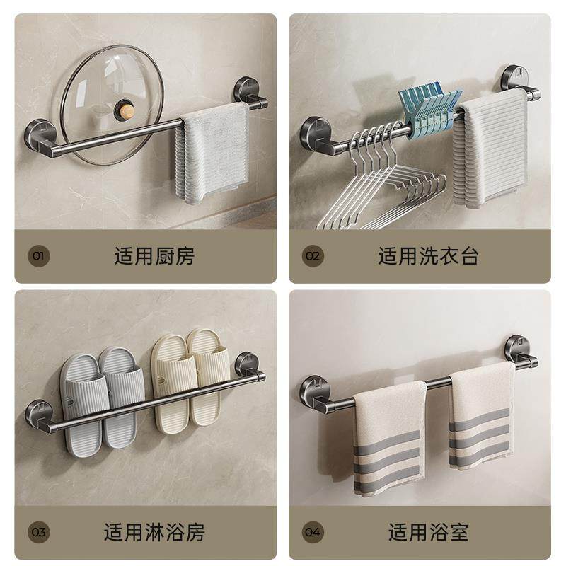 吸盘毛巾架毛巾挂杆收纳太空铝单双杆伸缩壁挂浴巾浴室水槽沥水袋
