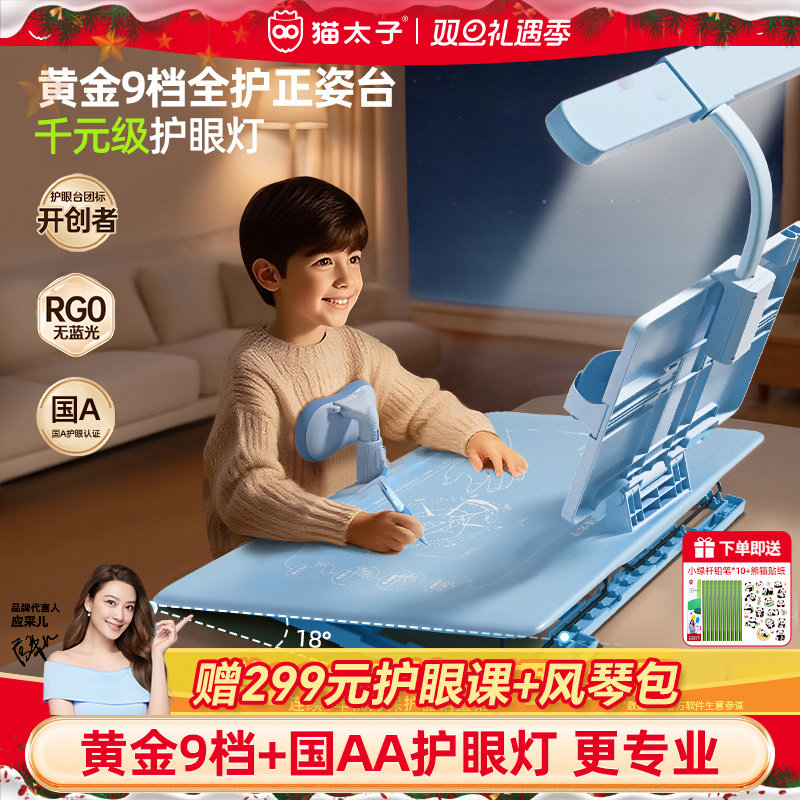 猫太子坐姿矫正器防低头写字姿势矫正器小学生桌面款台灯学习书桌坐姿儿童写字神器正姿支架视力保护器写作业