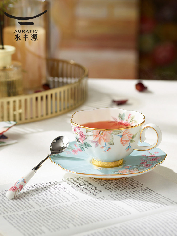 【高档礼物】永丰源天青时代3头咖啡杯碟 精致陶瓷茶杯轻奢杯子