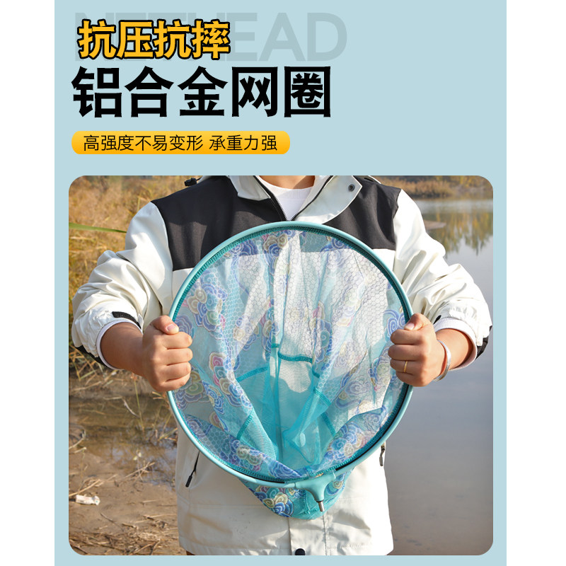 铝合金轻量抄网头钓鱼竞技网头加深网兜速干防挂钩大物钓鱼用品