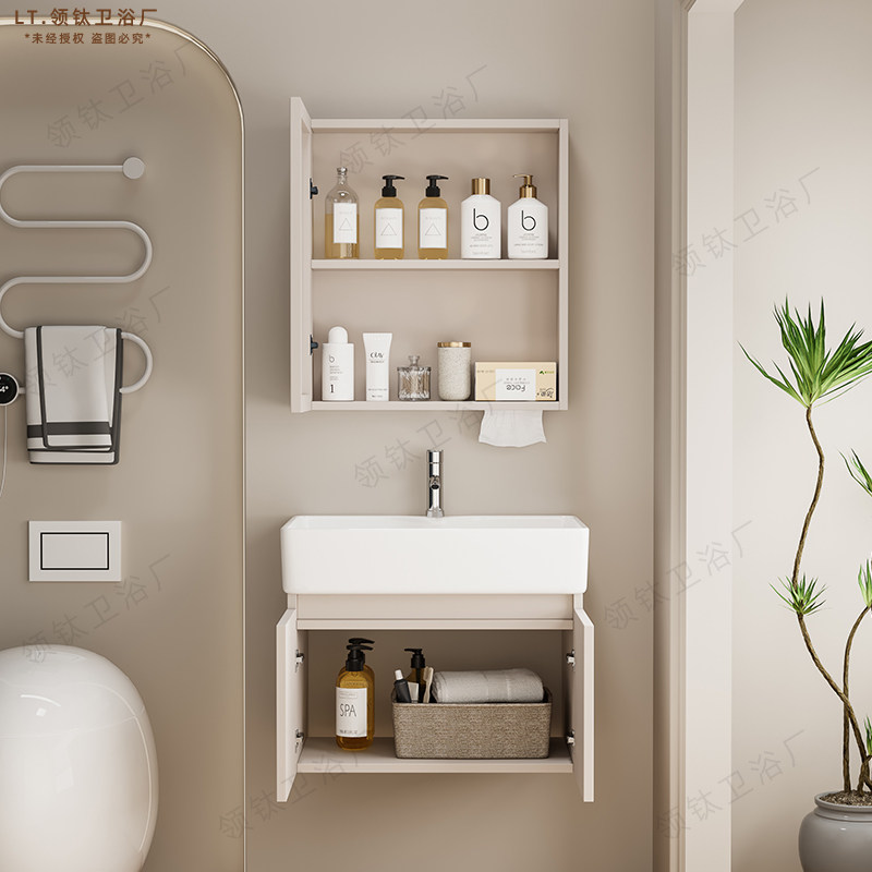 小户型浴室柜组合防水蜂窝铝卫生间窄边洗漱台陶瓷一体洗手盆