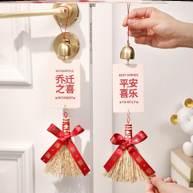 乔迁之喜新居门把手布置装饰新房客厅入门搬家仪式小扫把挂件用品