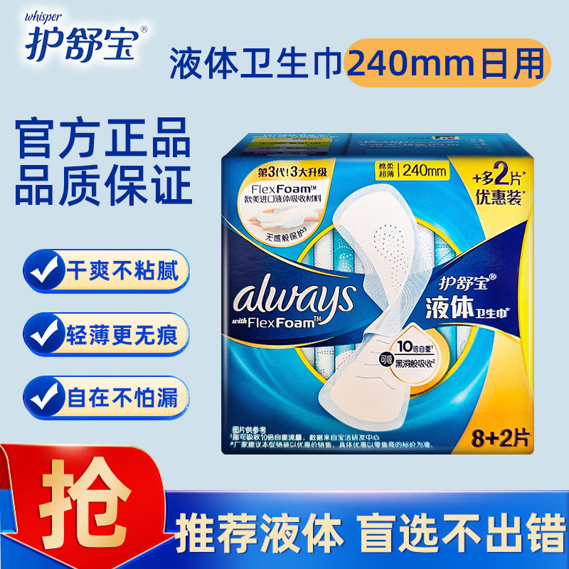【No.1热销】护舒宝液体卫生巾超薄日用量多姨妈巾透气官方旗舰店