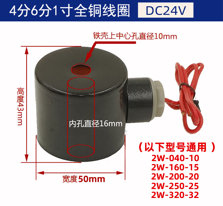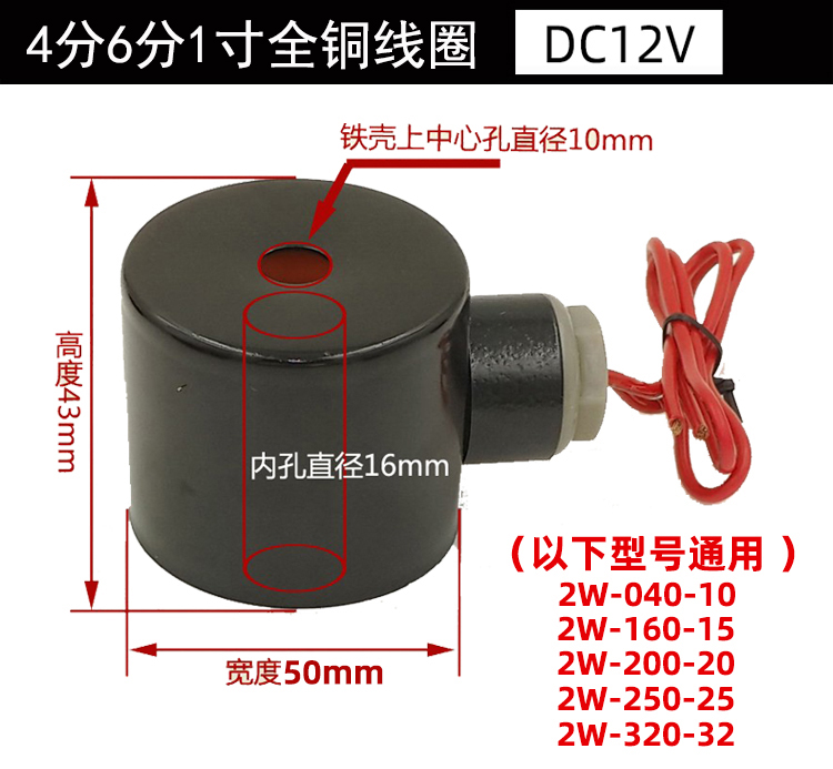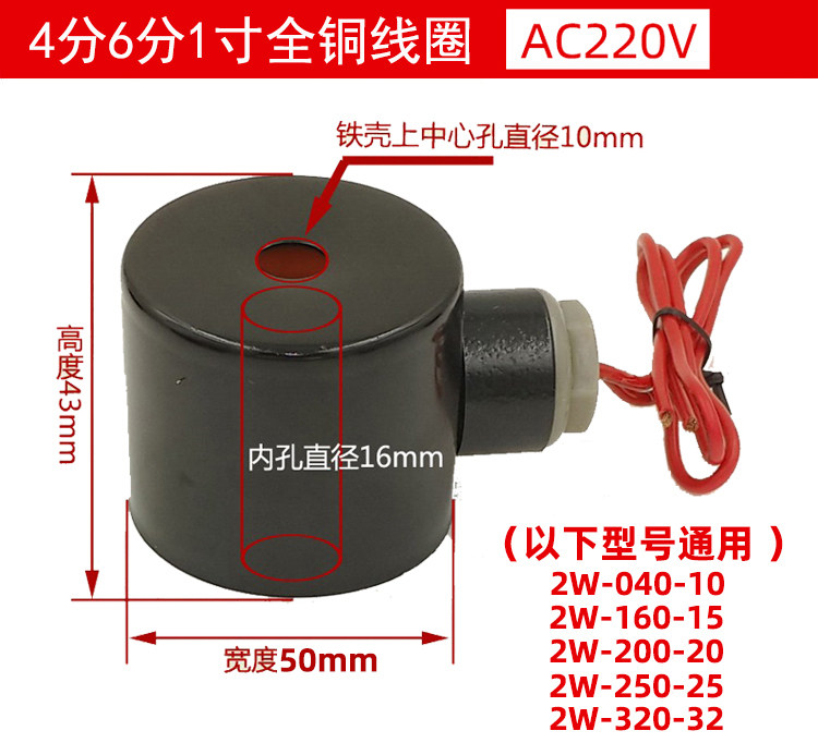 推荐理由:全铜线圈带铁壳 2W电磁阀线圈 水阀 气阀 2W160-15 内孔16mm防水