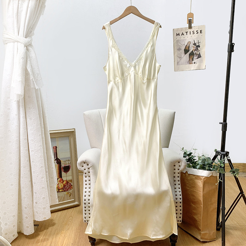 无假期的人】外单!奢华优雅法式贵族缎面睡裙性感吊带连衣裙女夏