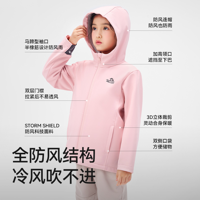 【叠加200-20消费券到手199元】伯希和儿童软壳衣,防风防泼水,守护宝贝每一刻!防风效果卓越,户外活动更安心。防泼水设计,雨天也能畅快玩耍。加绒保暖,让宝宝时刻温暖如春。