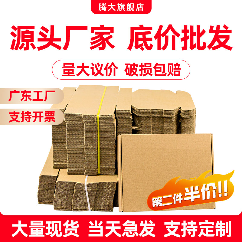 飞机盒50个长方形快递扁平加硬纸箱子小纸盒饰品盒数码包装盒批发