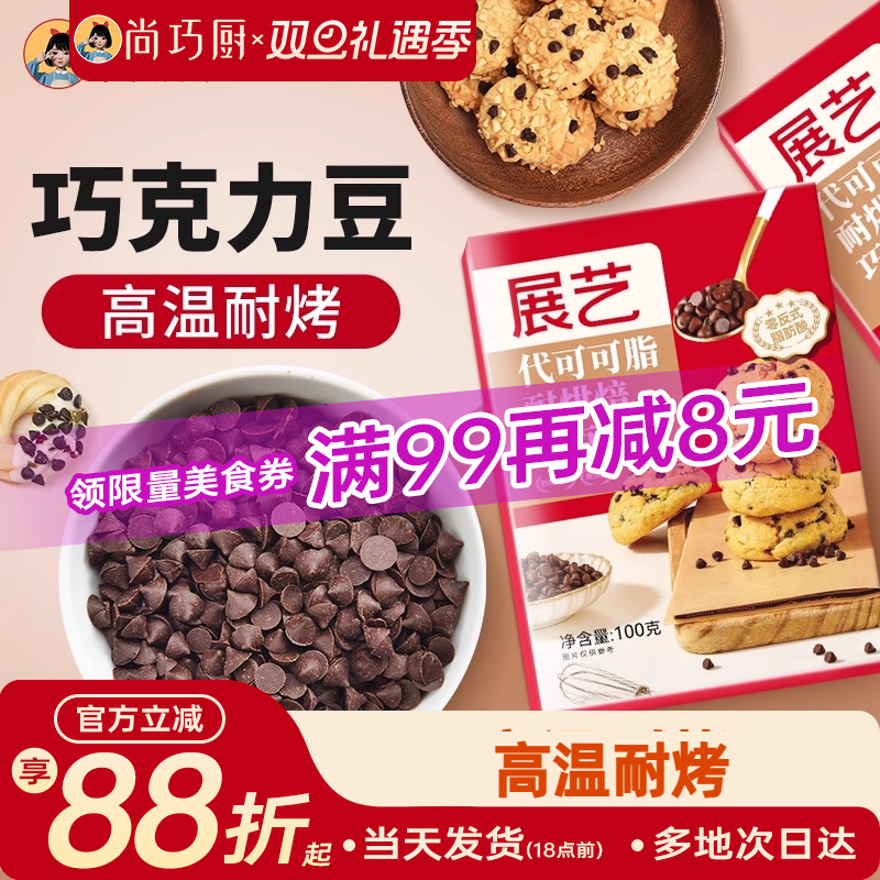 尚巧厨展艺耐高温黑巧克力豆蛋糕曲奇饼干烘焙专用(代可可脂)