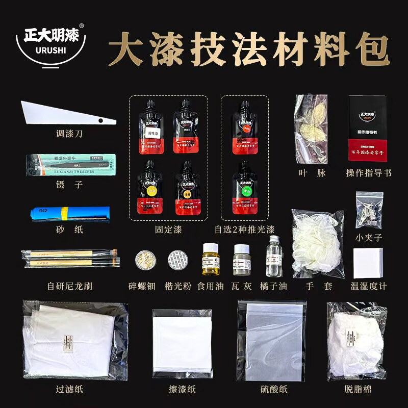 正大明变涂犀皮漆器材料包漆艺套装彩色大漆初学者工艺材料包