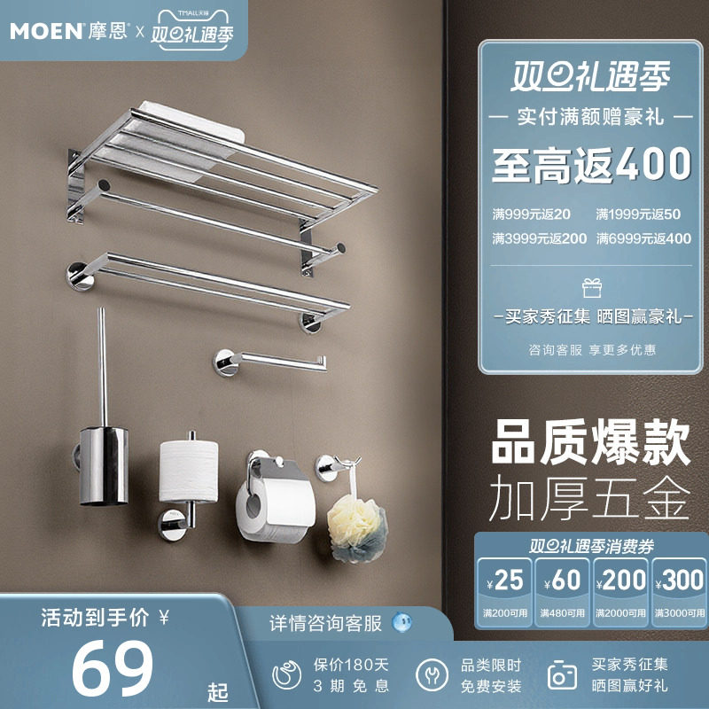 摩恩官方卫生间不锈钢浴巾架浴室毛巾架置物架卫浴挂件套装1901