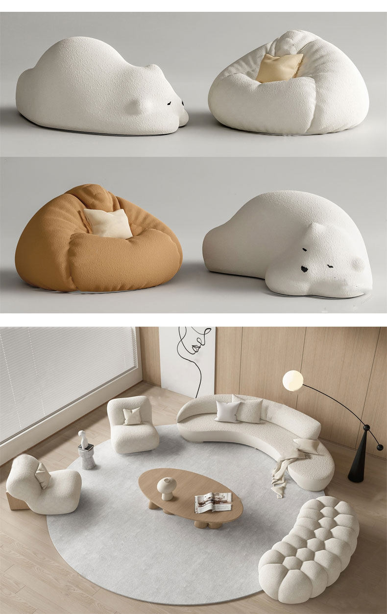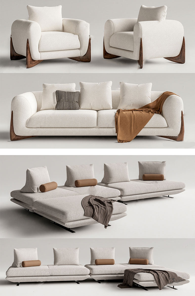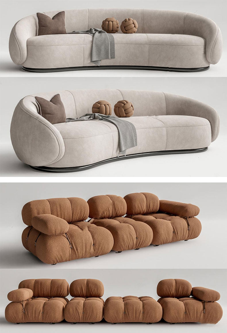 推荐理由:现代北欧轻奢沙发组合单人多人L异形L客厅家装真皮布艺su模型素材