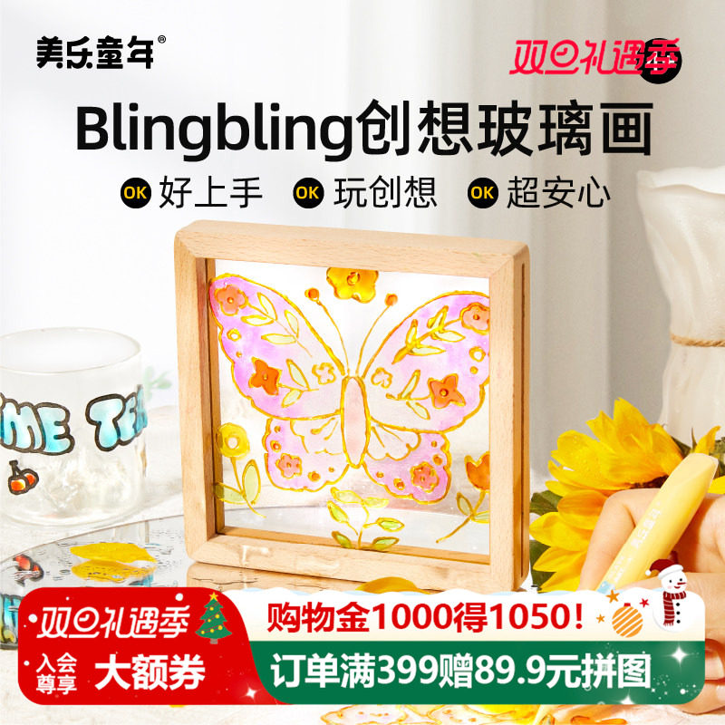 美乐童年儿童胶画免烤手工diy水晶玻璃画涂色画画填色冰冰胶玩具