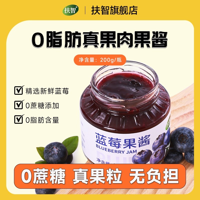 扶智蓝莓果酱蓝莓酱0添加白砂糖儿童果酱烘焙面包蛋糕草莓吐司