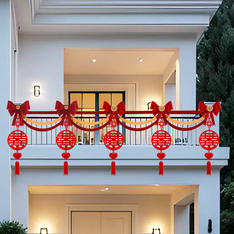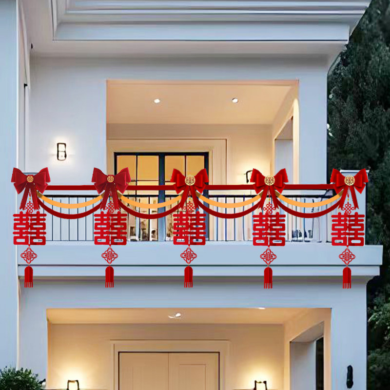 推荐理由:农村结婚阳台院子布置楼梯扶手栏杆装饰喜字拉花挂饰挂件高级简单