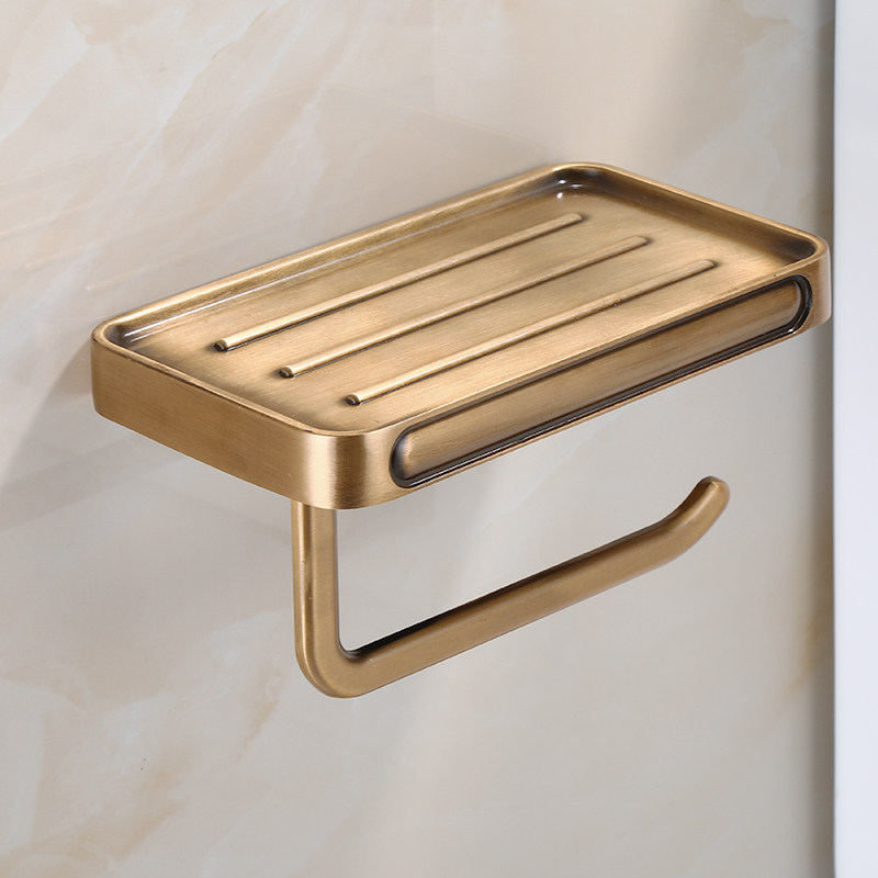 免打孔复古纸巾架仿古厕纸架厕所卷纸器手机托盘卫生间家用古铜色