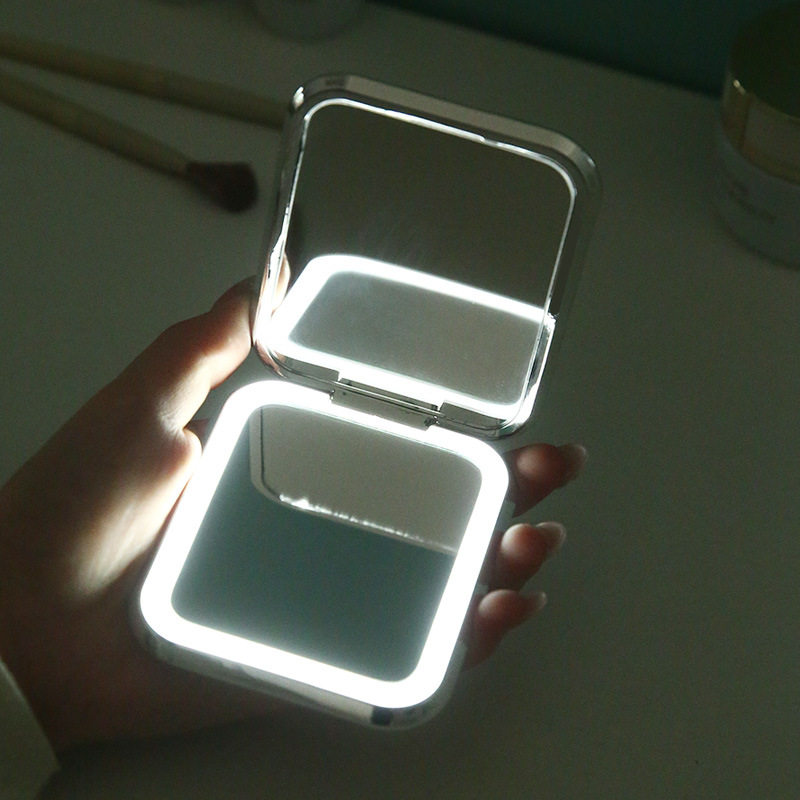 ins手持小镜子女随身携带双面镜折叠化妆镜翻盖式不锈钢迷你便携