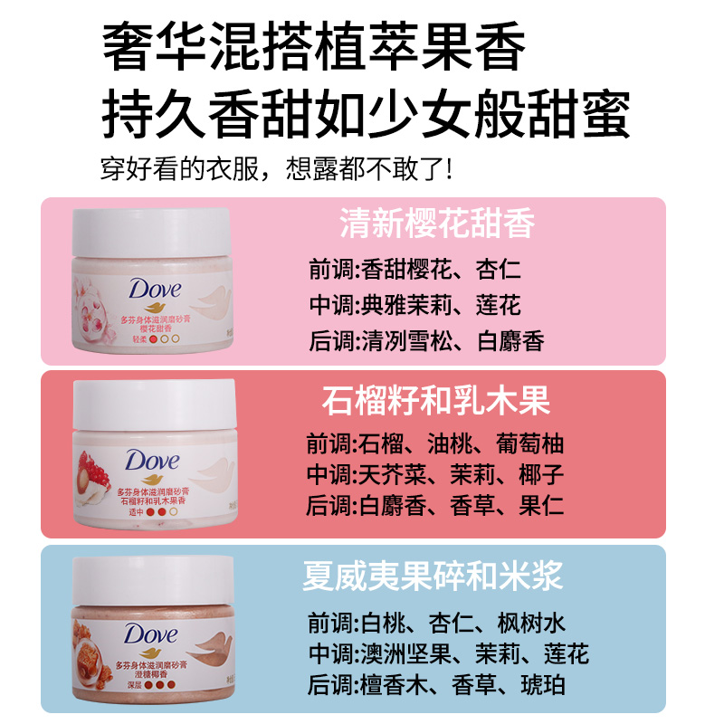 推荐理由:DOVE多芬身体磨砂膏嫩白全身去角质鸡皮石榴籽保湿滋润身体红石榴