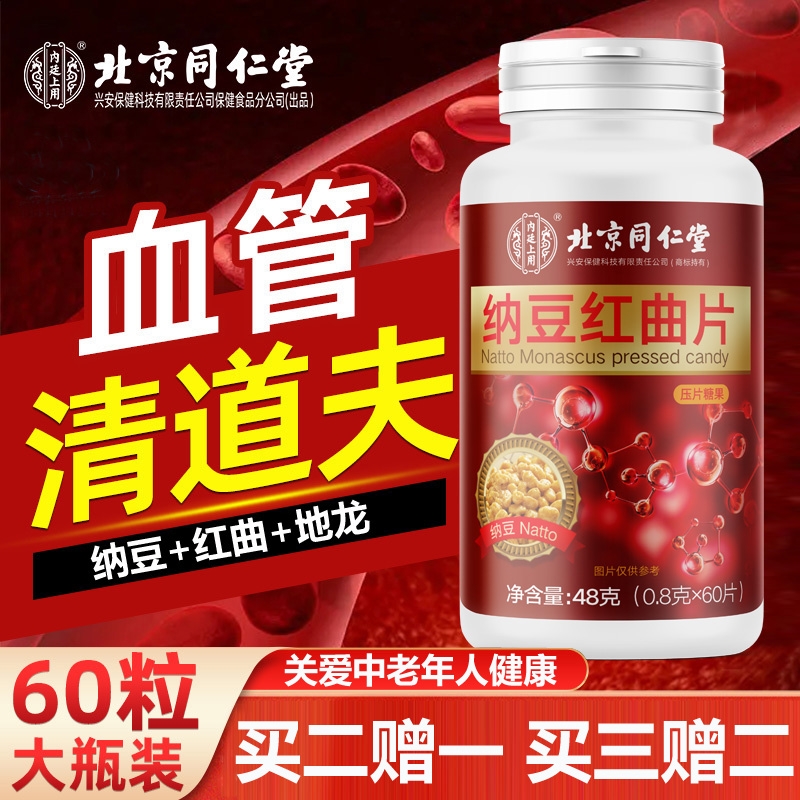 北京同仁堂纳豆红曲片激酶胶囊搭血管软化官网正品官方血压店疏通