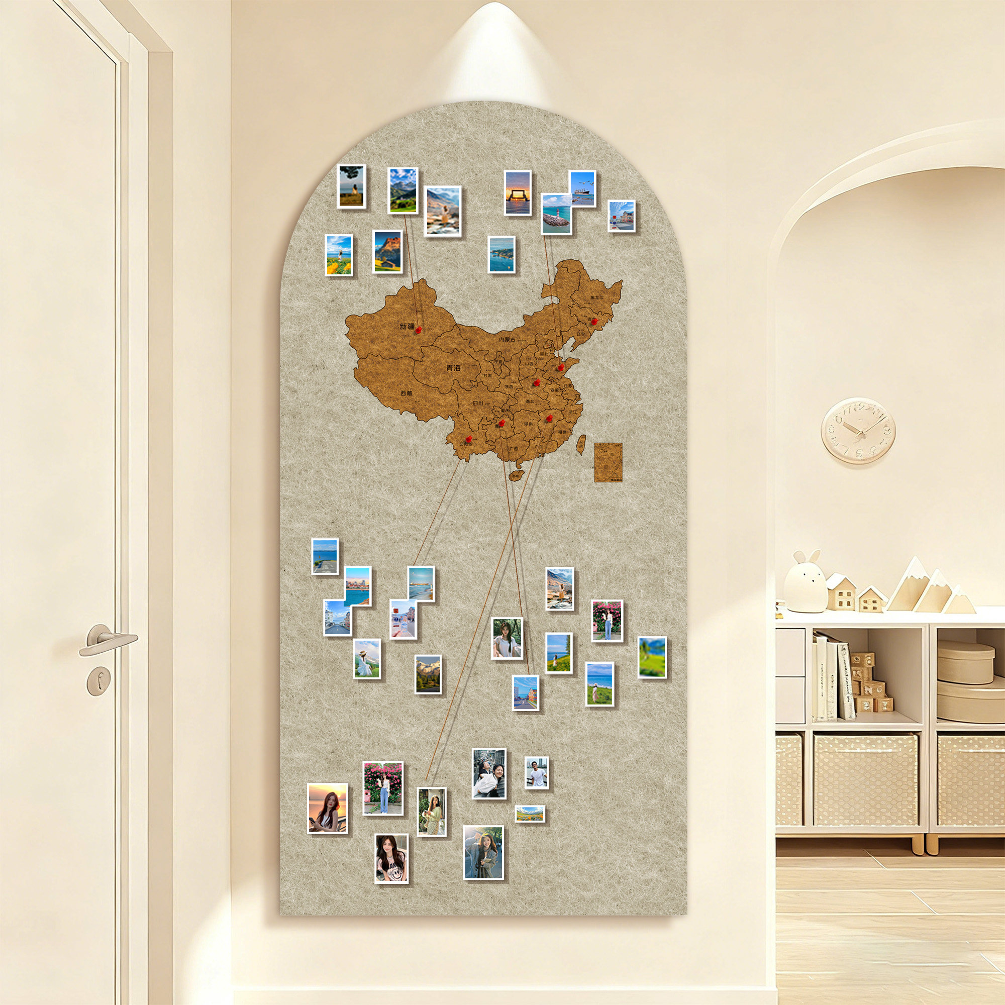 毛毡板中国地图旅行照片墙足迹打卡世界软木旅行地图标记墙版吸毛毡板墙贴幼儿园主题创意免打孔客厅墙面装饰