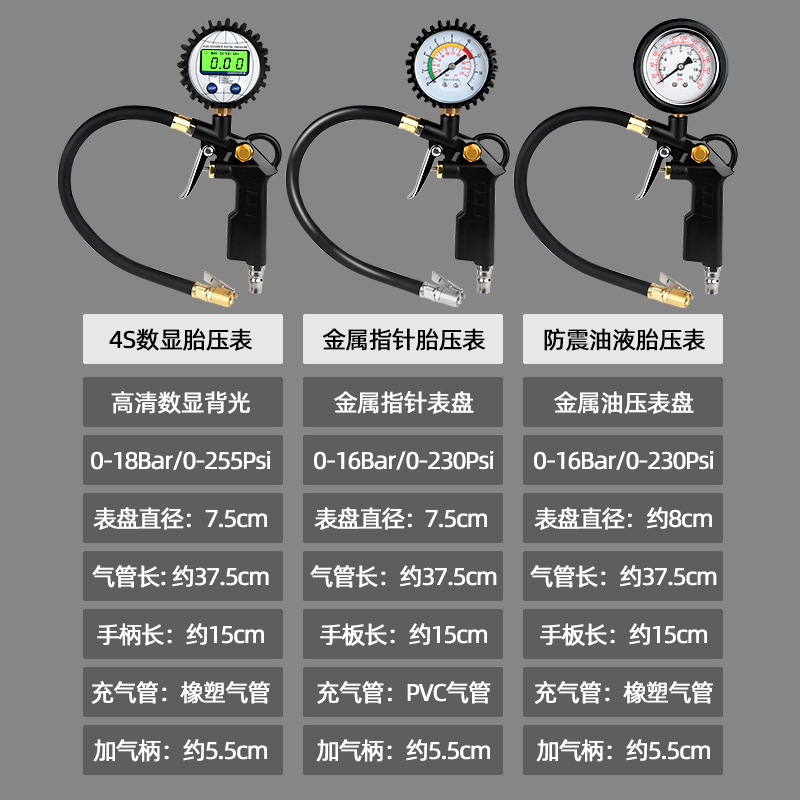 汽车轮胎气压计4S汽修店高精度胎压表测量检测加打充气枪铜快接头