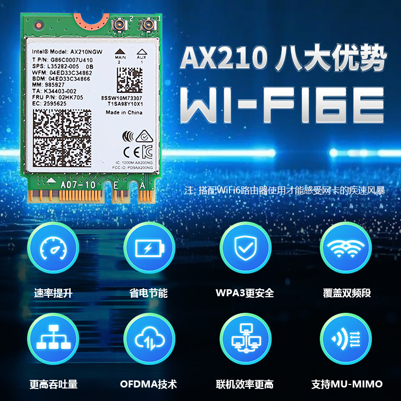 推荐理由:AX210无线网卡芯片模块WiFi6蓝牙5.3 5.4台式机电脑内置免驱千兆wifi7笔记本BE200 5400M 三频台式机m.2网卡