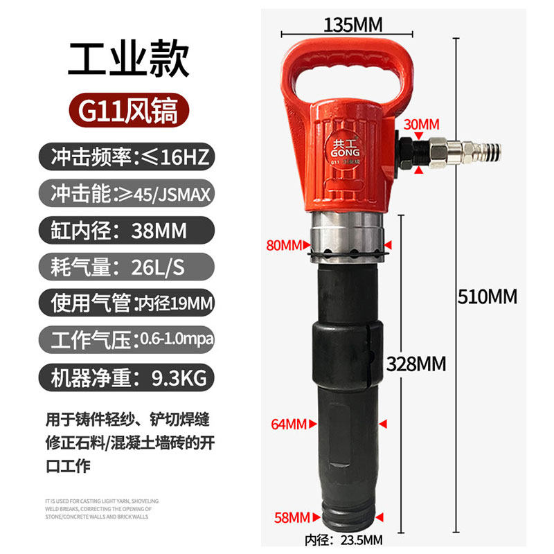 推荐理由:共工风镐气镐G10冲击风铲G11G15G20混凝土破碎机气锹清砂凿岩机