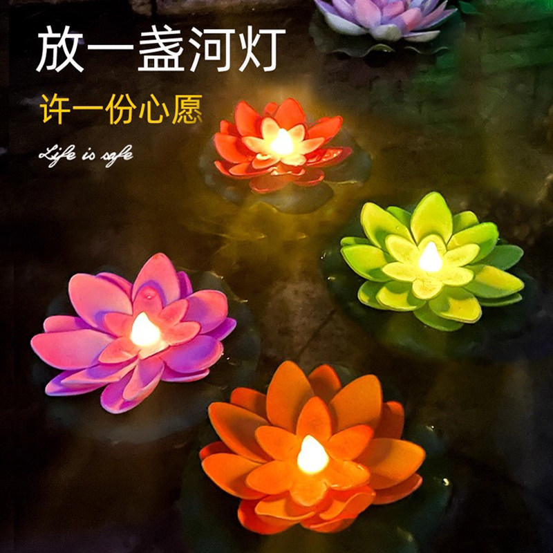 浮水灯荷花莲花河灯感应灯许愿灯中秋水面景观池塘装饰布置节日