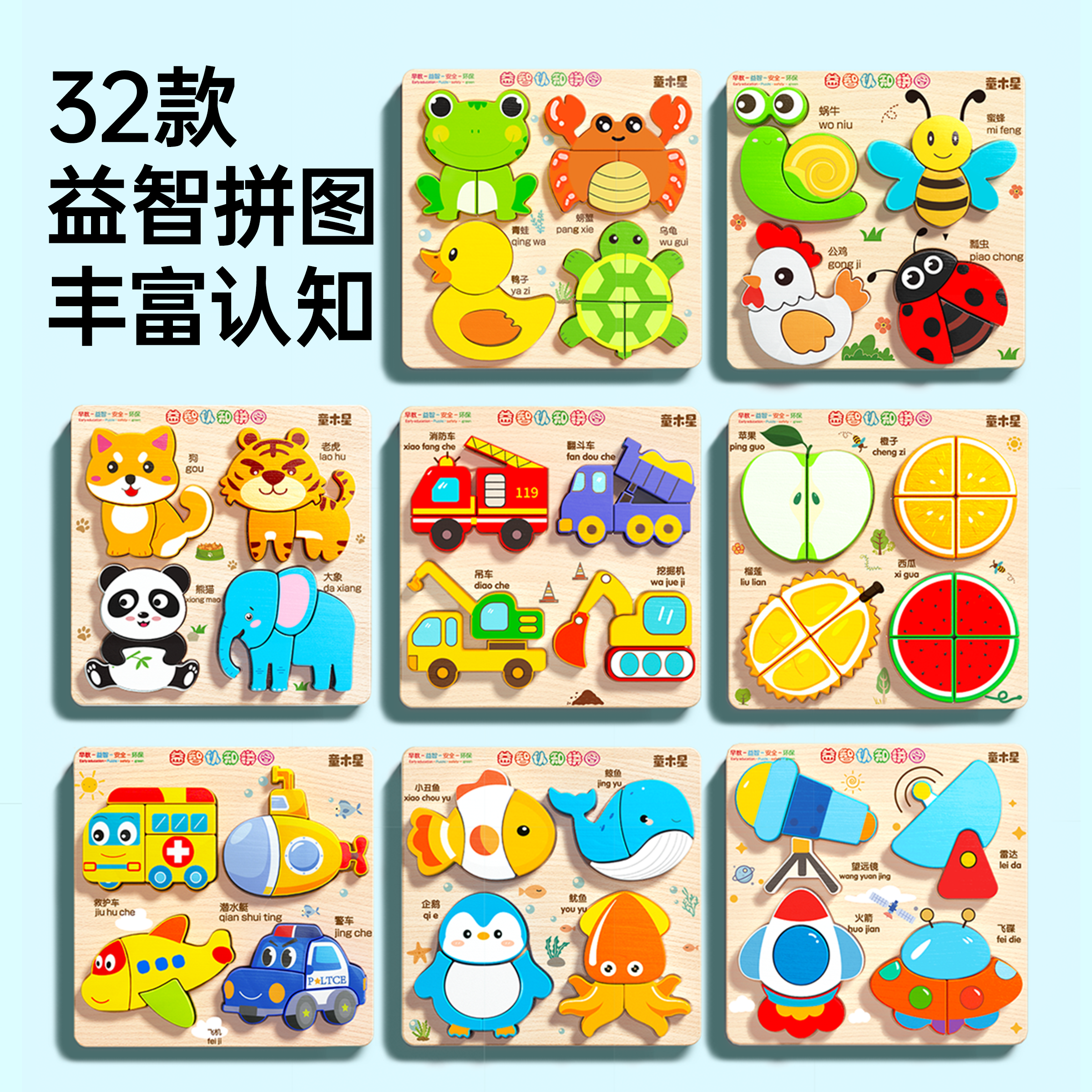 儿童益智拼图立体木质0到3岁宝宝智力早教男孩女拼装积木玩具礼物