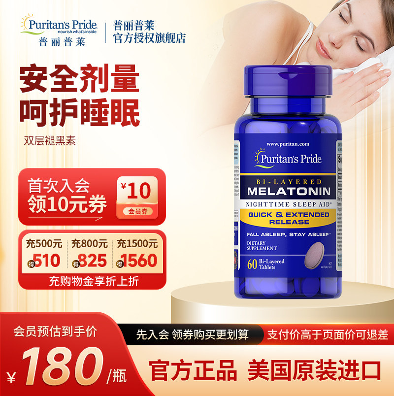 普丽普莱美国进口褪黑素官方正品改善睡眠松果体素片成人中老年