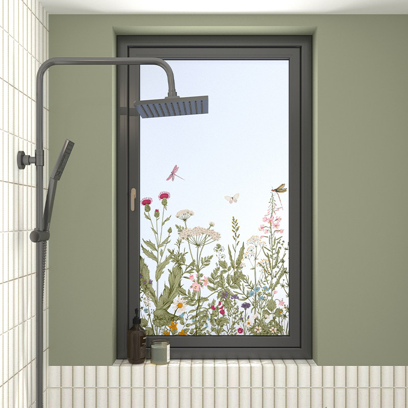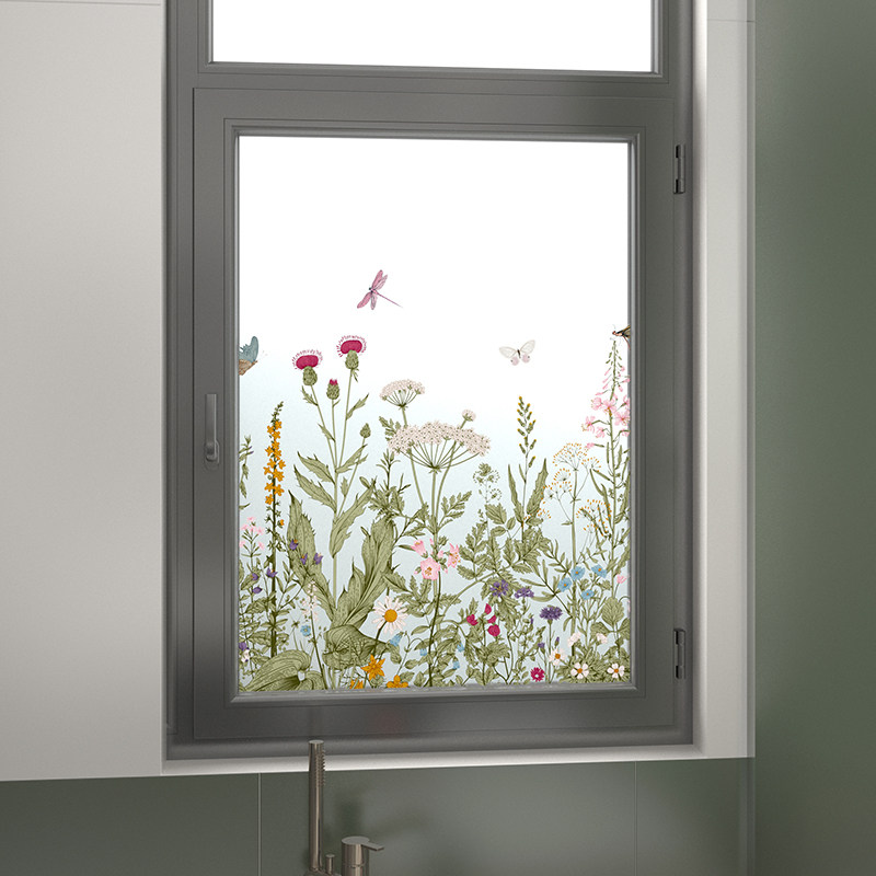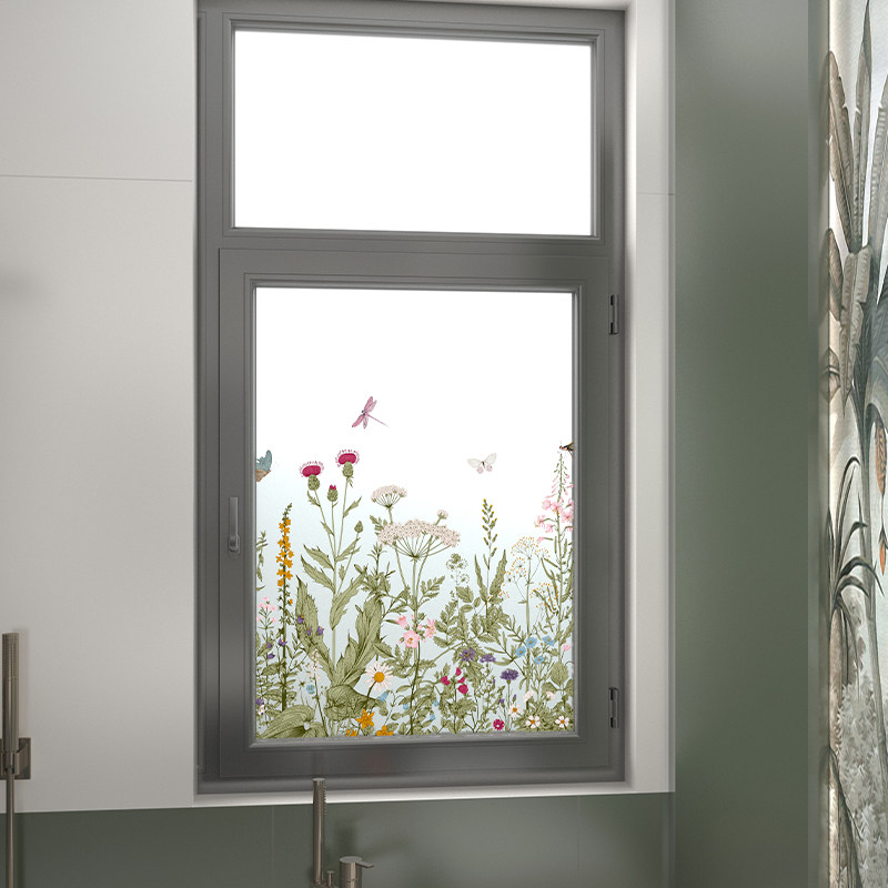 复古植物花卉装饰贴膜卫生间厕所防窥膜阳台飘窗布置静电贴纸窗花