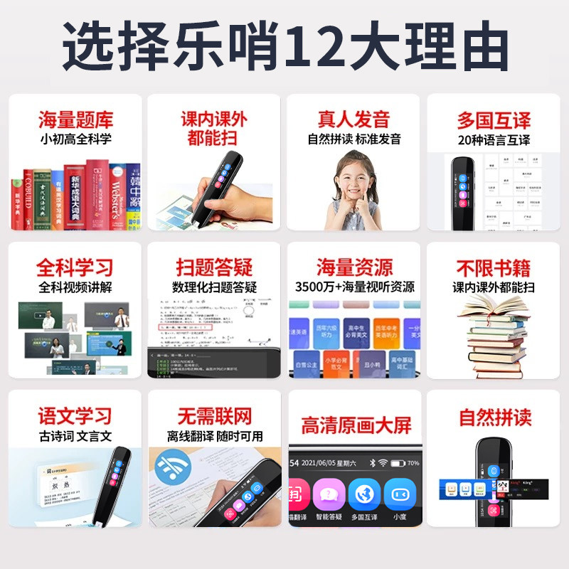 乐哨K3点读笔通用万能英语扫读全科小学生翻译词典笔点读机小学到初高中生儿童英语单词记背神器扫描
