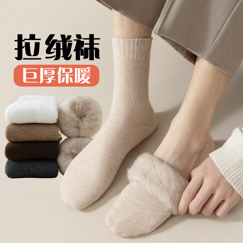 兰缪加绒加厚冬季保暖袜子中筒女士纯色毛绒地板袜时尚百搭月子袜