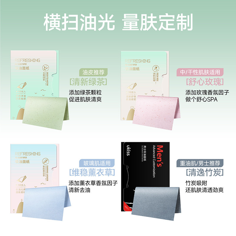 UKISS吸油纸面部清爽吸油定妆(绿茶+玫瑰+薰衣草)
