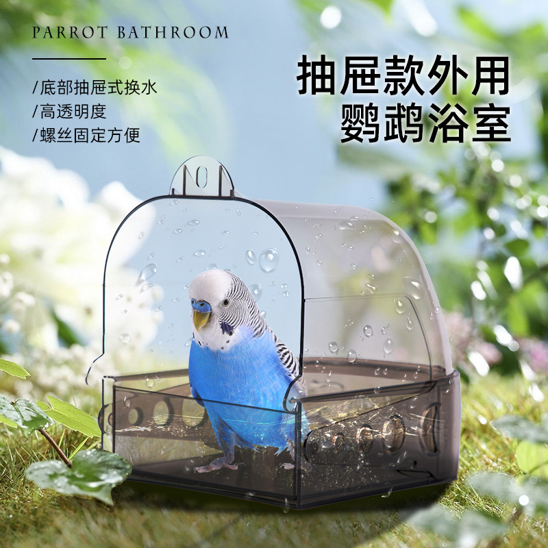 鸟用洗澡盒新款带抽屉虎皮玄凤鹦鹉洗澡盆浴盆鸟用具浴房洗澡神器