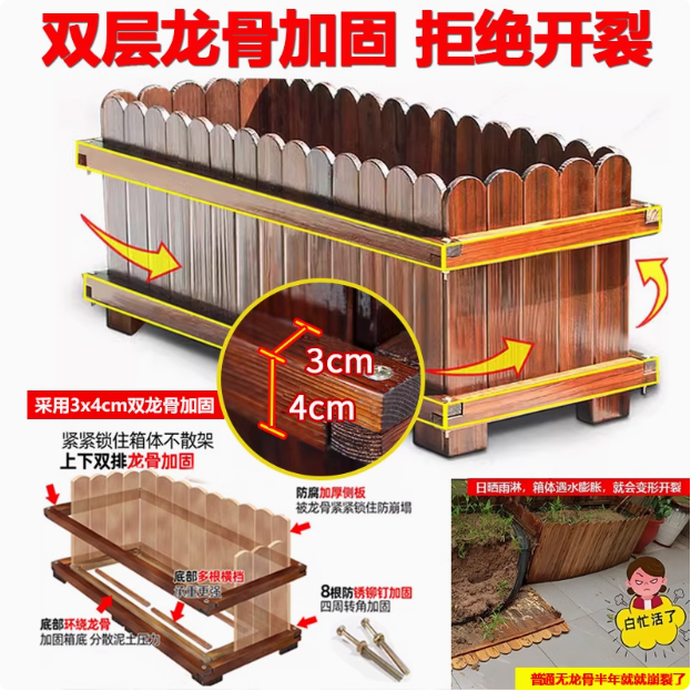 推荐理由:防腐木花箱长方形阳台庭院露台种菜盆室外碳化实木种植箱特大花槽