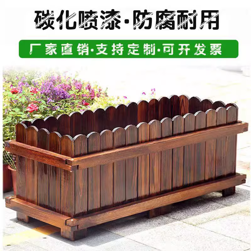 防腐木花箱长方形阳台庭院露台种菜盆室外碳化实木种植箱特大花槽
