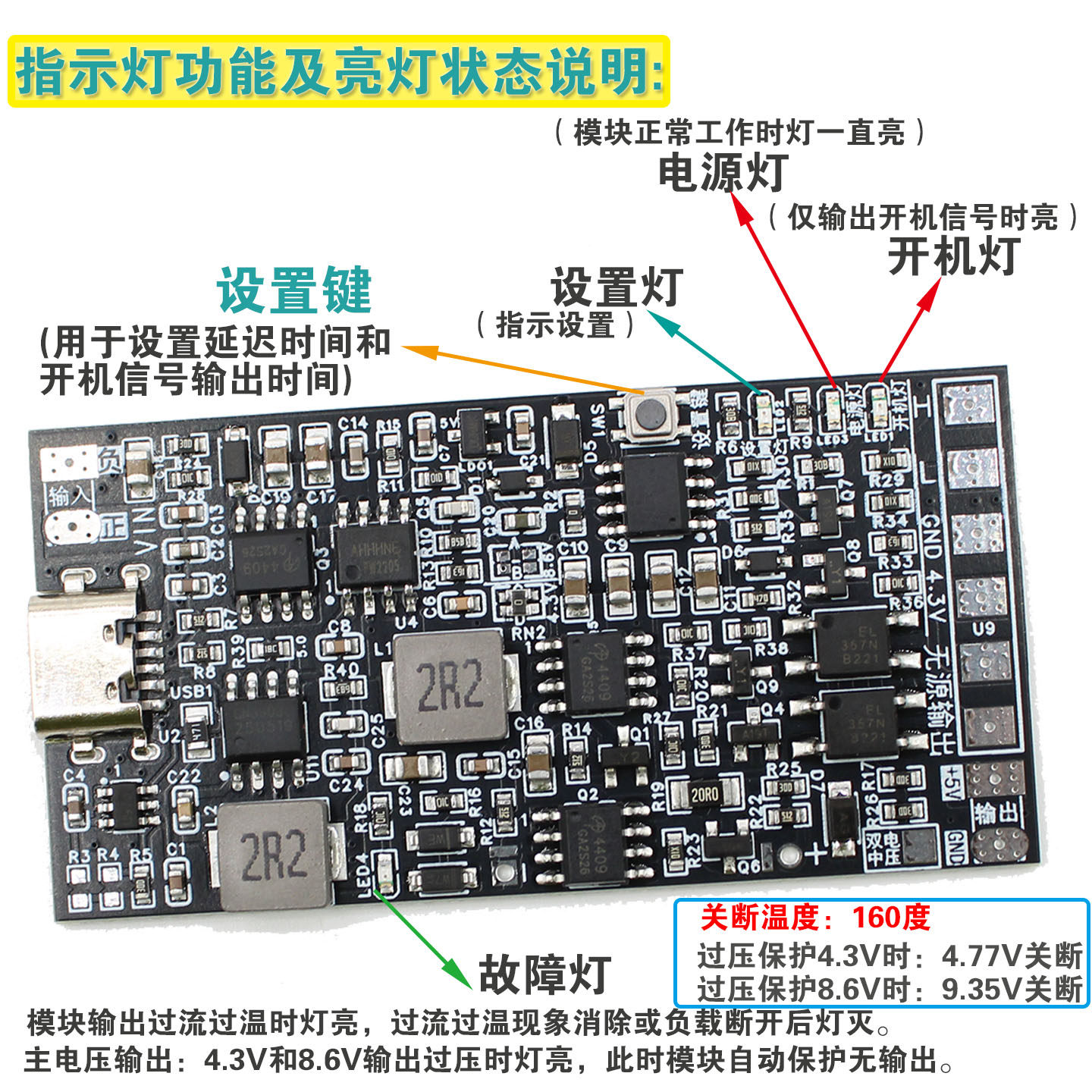 智能手机平板导航移动WiFi车载设备直供电无电池自动开机模块4.3V