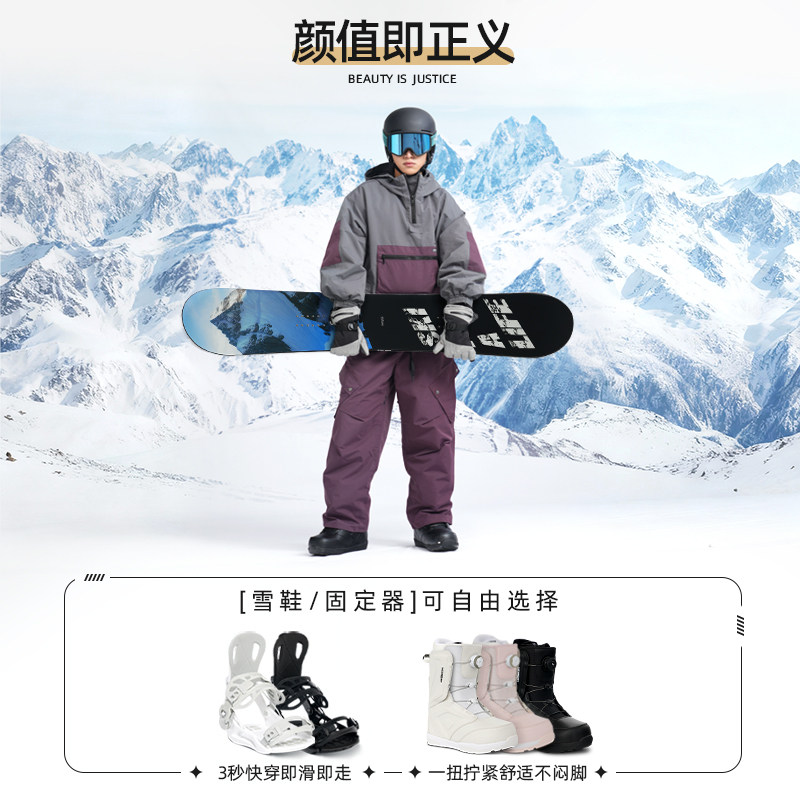 推荐理由:滑雪板单板套装全能板进阶板快穿套装滑雪板雪鞋固定器滑雪装备