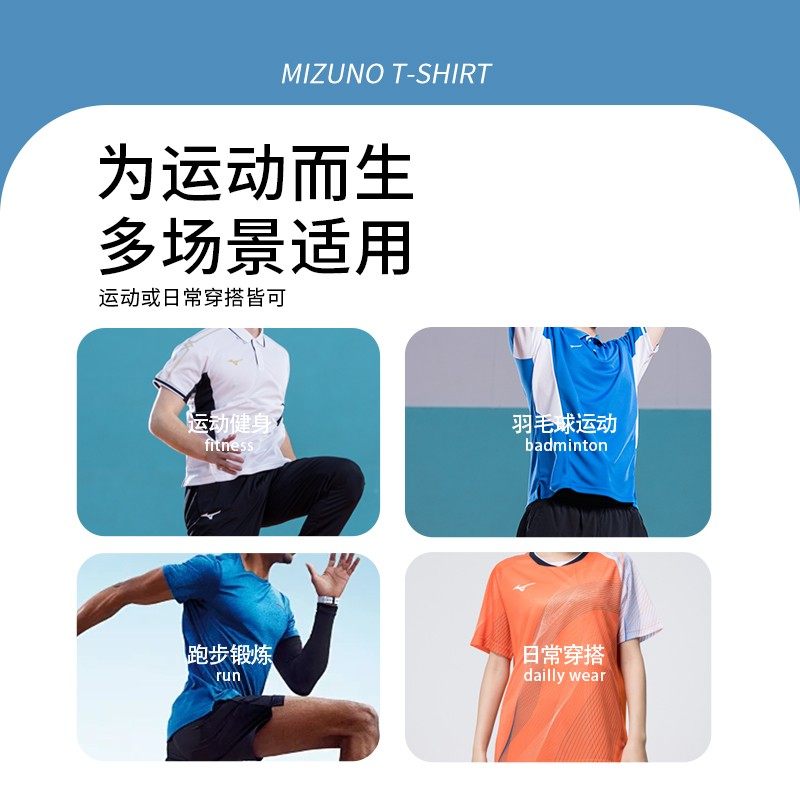 推荐理由:美津浓羽毛球服男女运动服速干衣服气排球服定制短袖T恤清仓捡漏