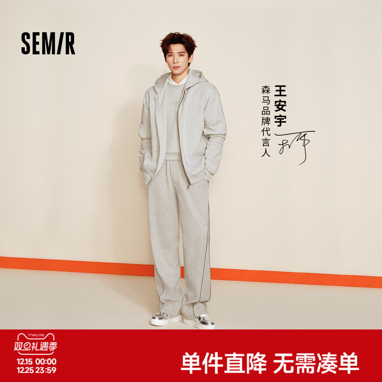 商场同款|森马休闲裤男冬发热加绒宽松直筒裤2025新款情侣针织裤