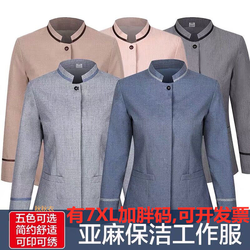 推荐理由:亚麻保洁服长袖冬装吸汗透气物业家政工作服酒店宾馆客房阿姨套装